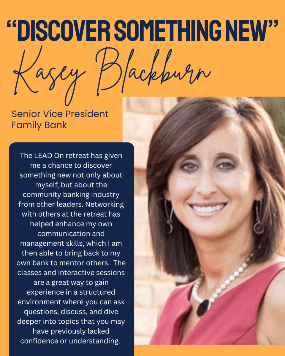 - Professional Growth: Sharpen your leadership skills in a dynamic, structured learning environment tailored for community banking professionals in Georgia.