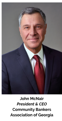 As President and CEO of the Community Bankers Association of Georgia, I stand ready to work collaboratively with legislators, regulators, and members of the Administration to foster an environment in which community banks can thrive and continue serving the unique needs of their communities.