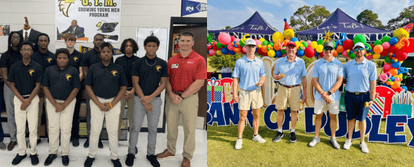 ![]() Bank of Dudley, Dublin, supported the Dublin-Laurens County Chamber of Commerce golf tournament by sponsoring a hole and having a team in the tournament. In addition, Matthew Weigel spoke to the GYM Program students at East Laurens High School.