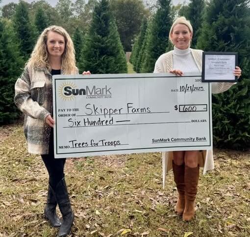 SunMark Community Bank, Perry, has partnered with Skipper Family Farms for their Christmas Trees for Troops initiative, which donates Christmas trees to three deserving families this holiday season.