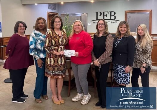 Exchange Bank, Milledgeville, presented a $1,000 donation to the Chard Wray Food Pantry. The bank is grateful for the opportunity to help support their mission of feeding local families.