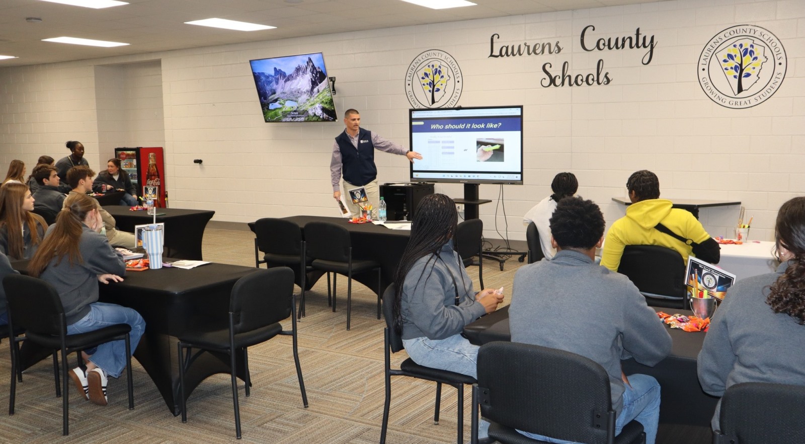 Matthew Weigel, Bank of Dudley, Dublin, spoke with Laurens Youth Leadership students about credit, budgeting, and loans.