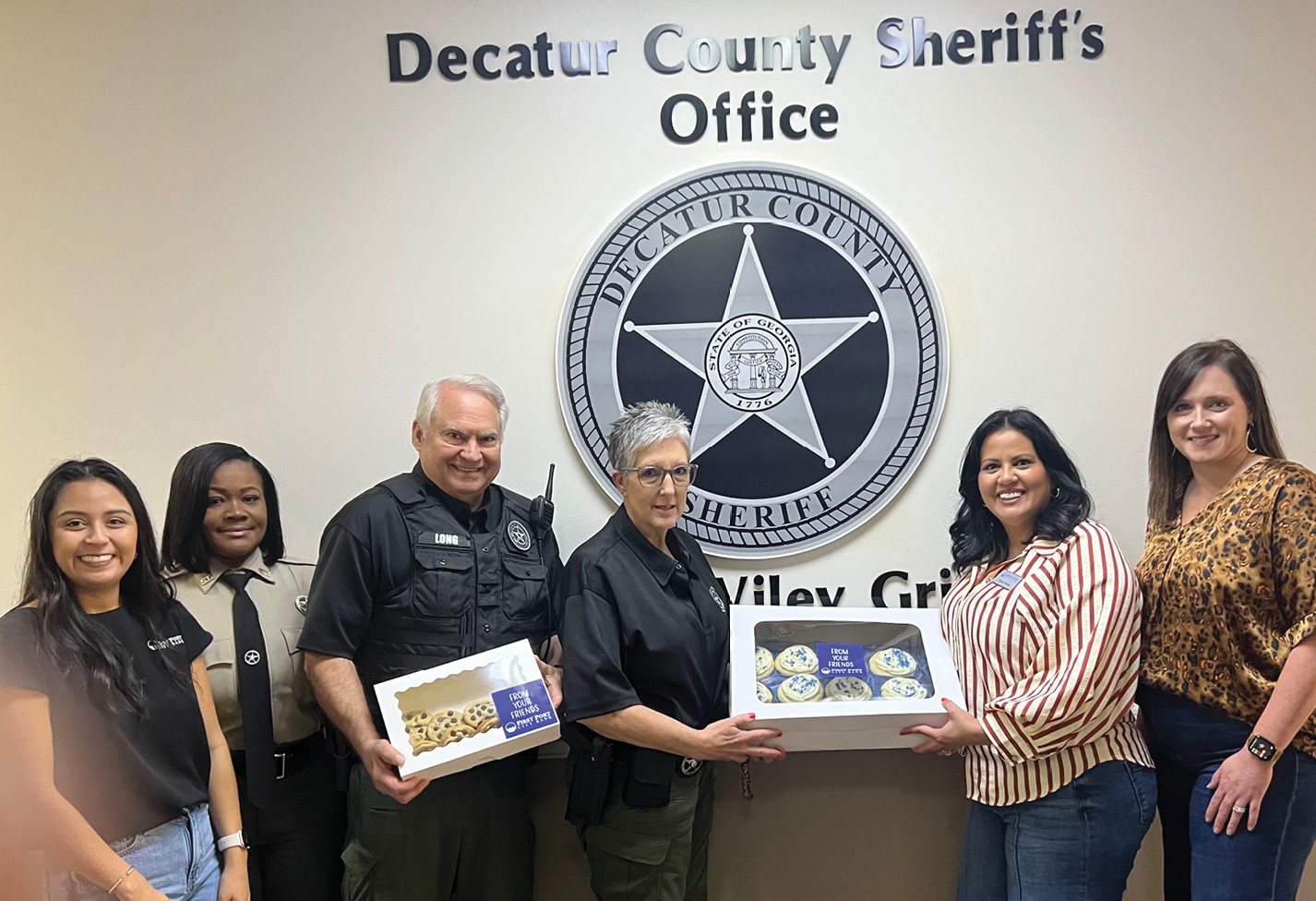 In honor of National Law Enforcement Appreciation Day, First Port City Bank, Bainbridge, visited the Decatur County Sheriff's Office; Seminole County Sheriff's Office; Bainbridge Public Safety and the Donalsonville Police Department to express their appreciation.
