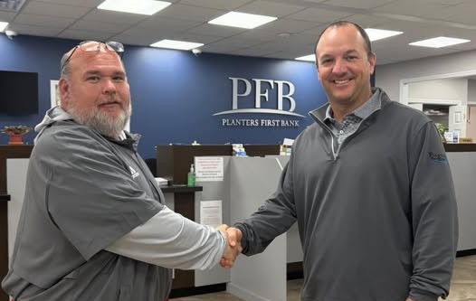 Market President, Jake Walters, Planters First Bank, Ocilla, presented a donation to Coach Johnson and the Irwin County Indians Football Program.