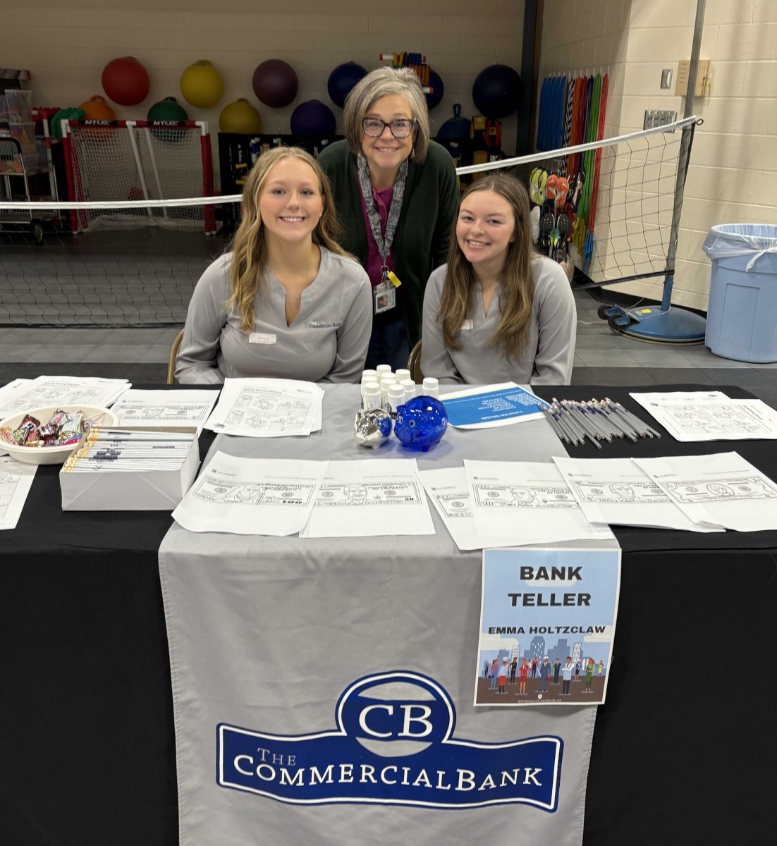 The Commercial Bank, Crawford team participated in the career fair at Danielsville Elementary School. Haley Morgan (L) and Emma Holtzclaw (R) are pictured with Emma’s mom, Mrs. Holtzclaw, who is a first grade teacher at the school.