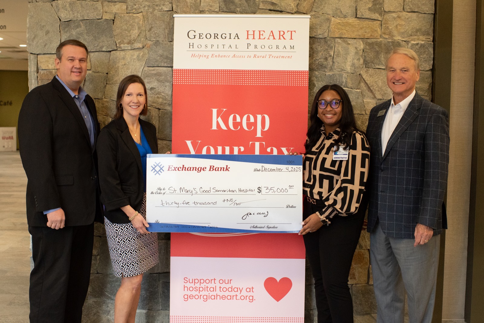 Exchange Bank, Lake Oconee, contributed $35,000 to St. Mary’s Good Samaritan Hospital through the Georgia HEART Rural Hospital Tax Credit Program.