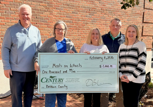 Century Bank and Trust, Milledgeville, made a $1,000 donation to Meals on Wheels Baldwin County in the bank’s continued support of the organization’s mission to combat senior hunger and isolation in the local community.