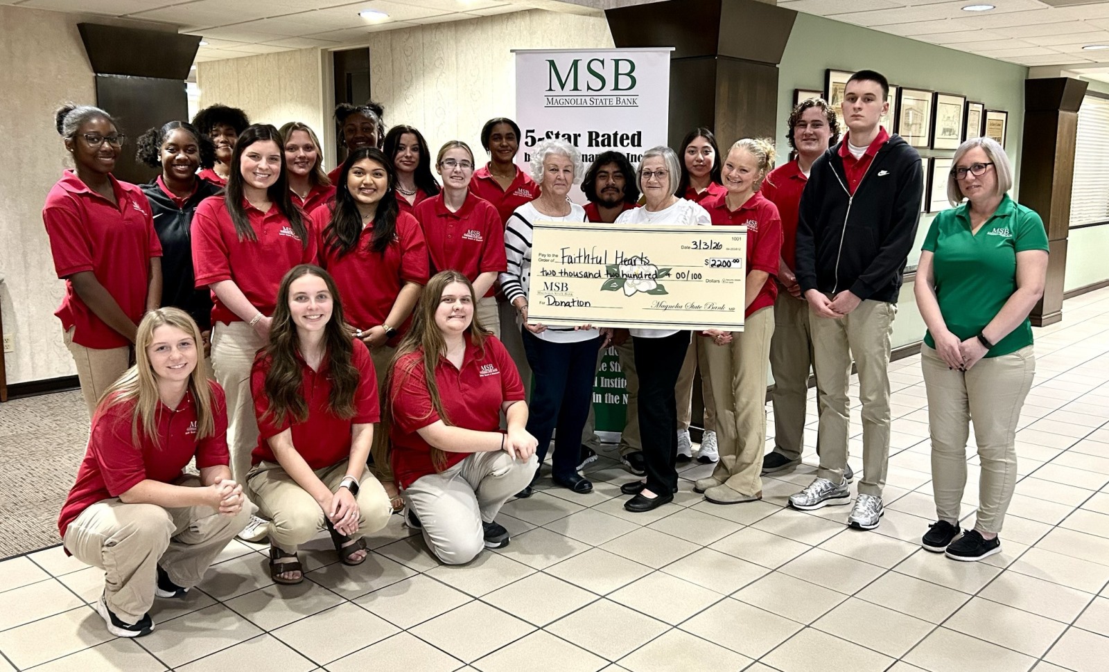 Together, Magnolia State Bank and the Junior Board raised $2,200 for Faithful Hearts. |