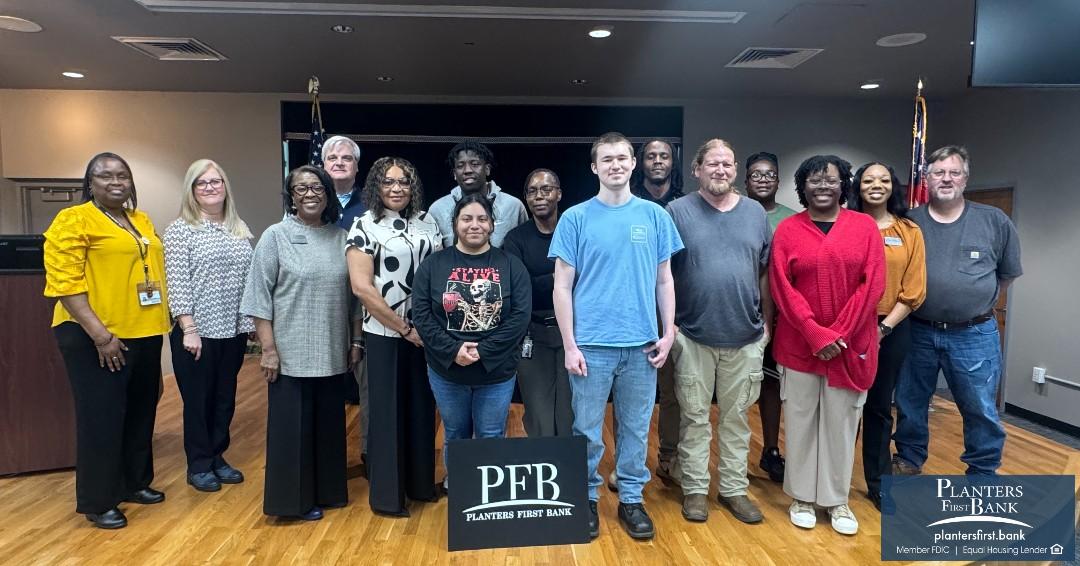 Planters First Bank team members Brenda Alexis, Universal Banker and Shane Bell, Cordele Market President, led discussions on financial literacy, fraud prevention, and credit building for students at South Georgia Technical College.